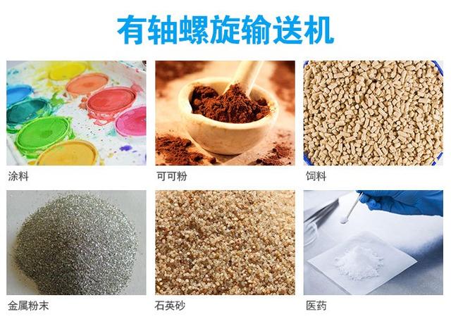 有軸葉片適用輸送的物料:粉料、小顆粒物料(如:面粉、大豆、混凝土等),如果輸送黏性物料如污泥就會(huì)粘在內(nèi)管軸和葉片上,輸送塊狀的物料容易卡死。