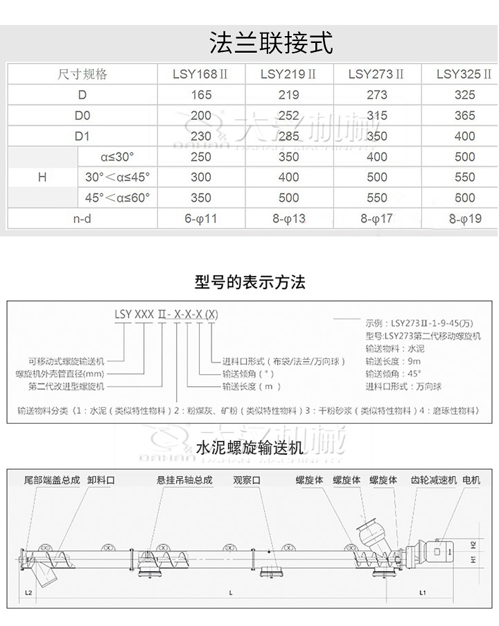 水泥螺旋輸送機由碳鋼制成,機殼表面有專門的粉末涂層,由一個至少裝有一個入口和出口噴嘴相撞的管狀槽組成,在每個管端都有一個焊接法蘭,在中心管上焊接了螺旋螺紋,每端都有聯(lián)軸器襯套,兩個端軸承組件都具有自動調(diào)節(jié)功能軸封(其中一個軸承組件已集成到驅(qū)動單元中),中間懸掛軸承的數(shù)量取決于總長度,主要主要用于混凝土配料廠,也用于其他建材加工廠,用于輸送或輸送水泥和類似于水泥的材料。參數(shù)如下:
