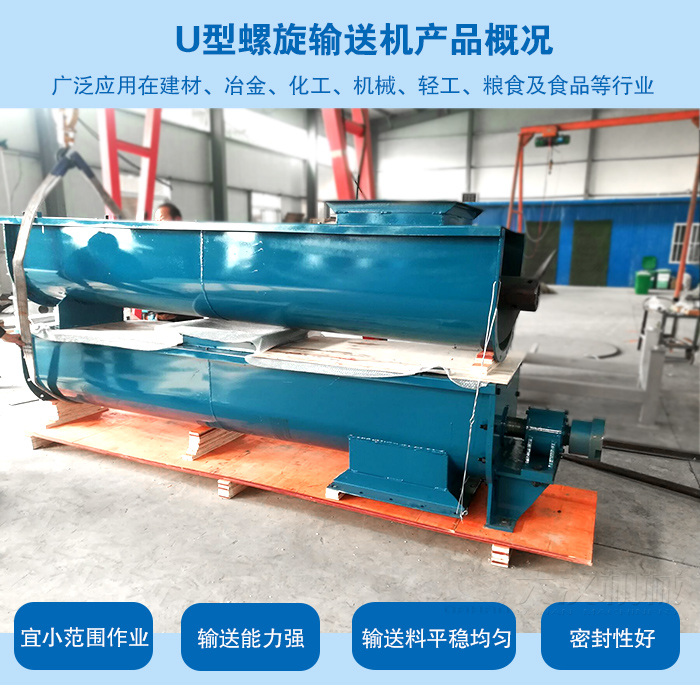 U型螺旋輸送機(jī)是螺旋輸送機(jī)的一種,適宜小范圍作業(yè)。U型螺旋輸送機(jī)因其輸送能力強(qiáng),輸送料平穩(wěn)均勻,不會(huì)造成揚(yáng)塵、不對(duì)周邊環(huán)境進(jìn)行污染,且能耗小,密封好,利屬于設(shè)備,近年來已經(jīng)被廣泛應(yīng)用在建材、冶金、化工、機(jī)械、輕工、糧食及食品等國(guó)民經(jīng)濟(jì)的很多領(lǐng)域。