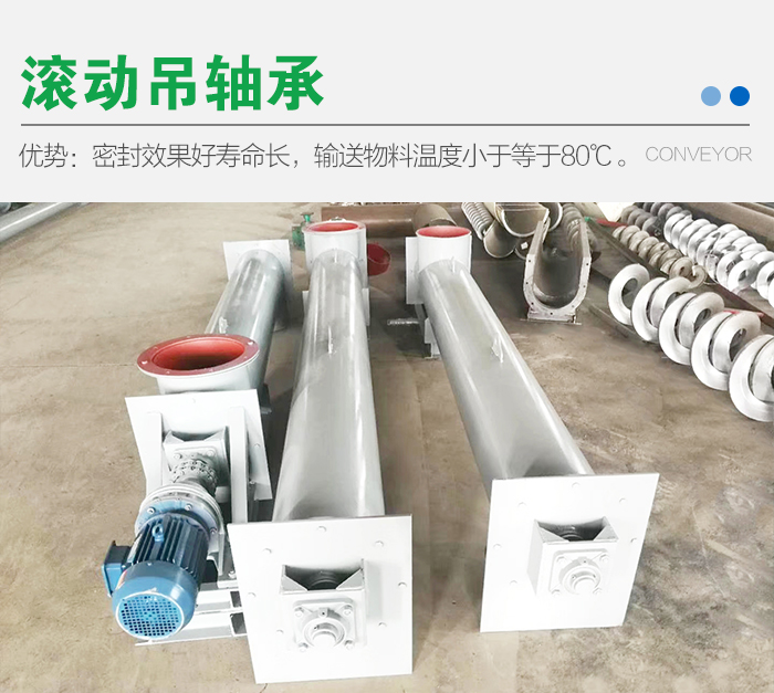 優(yōu)勢:U型螺旋輸送機(jī)密封效果好,吊軸壽命長,輸送物料溫度小于等于80℃。