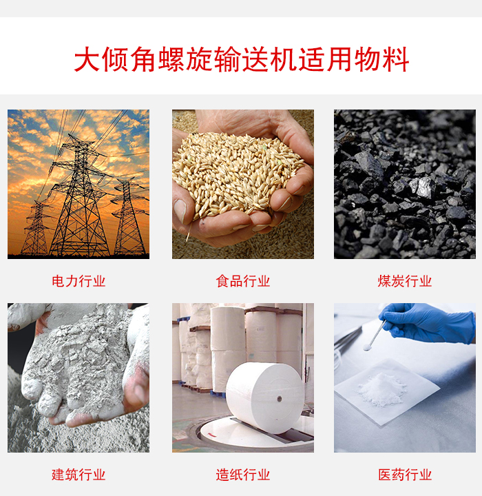 大傾角螺旋輸送機(jī)的適用范圍非常廣泛,例如糧食工業(yè)、建筑材料工業(yè)、化學(xué)工業(yè)、機(jī)械制造業(yè)、交通運(yùn)輸業(yè)等。其適用于各種粉狀、粒狀、小塊狀物料,還有可以輸送粘性,帶狀易纏繞的特殊型號(hào)。粒物料如谷物、豆類、面粉等食品類,干水泥、粘土、沙子等建筑類,鹽類、堿類、化肥等化學(xué)類,還有礦石等其他類別,粘性物料如濕水泥等,易纏繞物料如生活垃圾等??傊髢A角螺旋輸送機(jī)被廣泛應(yīng)用于各行各業(yè),可見其重要性,也印證了它是有價(jià)值的。