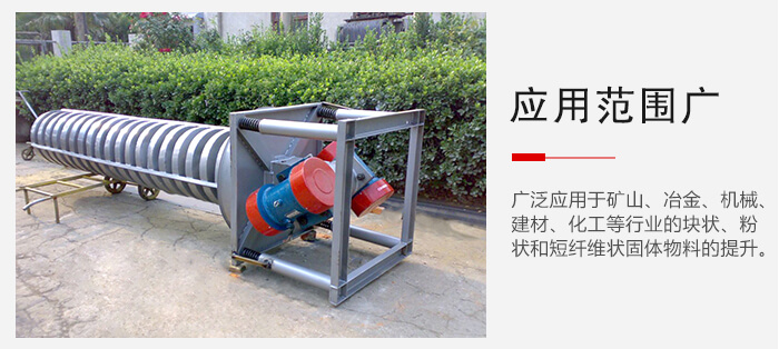 2、廣泛應(yīng)用于礦山、冶金、機(jī)械、建材、化工、橡膠、醫(yī)藥、電力、糧食、食品等行業(yè)的塊狀、粉狀和短纖維狀固體物料的提升。