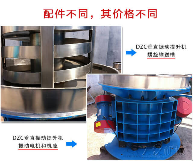 不同型號(hào)的垂直振動(dòng)提升機(jī),其輸送槽直徑是不同的,所以這就使得單位時(shí)間內(nèi)不同型號(hào)的垂直振動(dòng)提升機(jī)輸送量是不同的,所以價(jià)格也勢(shì)必會(huì)有所影響。大漢垂直振動(dòng)提升機(jī)型號(hào)有DZC300、DZC500、DZC550、DZC600、DZC800、DZC850、DZC900等多種型號(hào),用戶選擇的型號(hào)不同,價(jià)格也會(huì)略微有所變化。