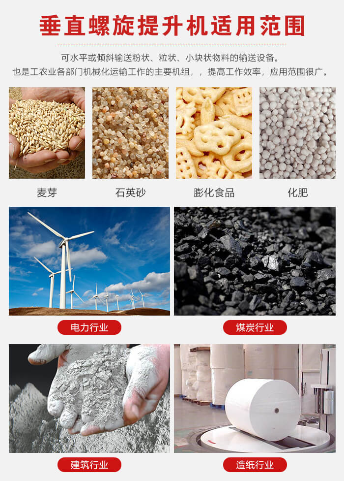 螺旋垂直提升機(jī)是用來(lái)水平或傾斜輸送粉狀、粒狀、小塊狀物料的一般用途的輸送設(shè)備, 螺旋輸送給料機(jī)是工農(nóng)業(yè)各部門機(jī)械化運(yùn)輸工作的主要機(jī)組,可使運(yùn)輸工作減輕勞動(dòng)強(qiáng)度,提高工作效率,應(yīng)用范圍很廣。