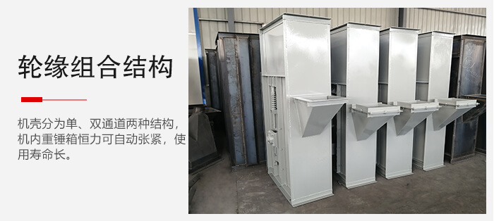 整機(jī)機(jī)殼分為單、雙通道兩種結(jié)構(gòu),機(jī)內(nèi)重錘箱恒力可自動(dòng)張緊,鏈輪為可更換輪緣組合式結(jié)構(gòu),更換簡便;使用壽命長,