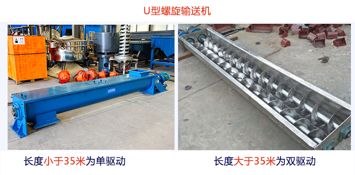 U型螺旋輸送機(jī)為單驅(qū)動時,長度小于35m;雙驅(qū)動時,長度大于35m時;該輸送機(jī)只適合小范圍,小傾角輸送。