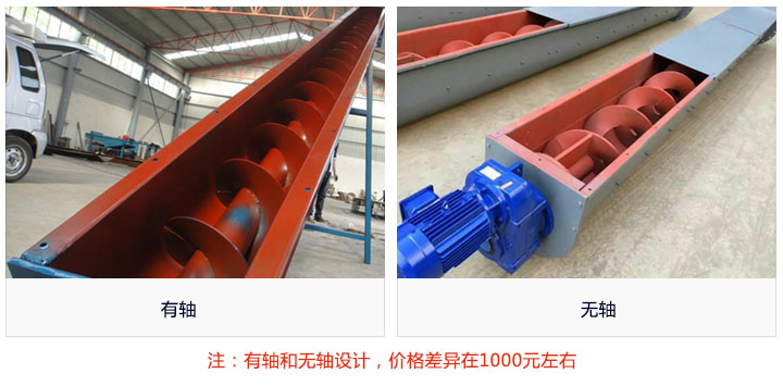 絞龍螺旋輸送機按物料屬性不同所使用的螺旋葉片不同可分有軸和無軸兩種,采用的設(shè)計理念也就不同,同種情況下,無軸的要比有軸的生產(chǎn)難度高,因此價格也會存在1000元左右的偏差。