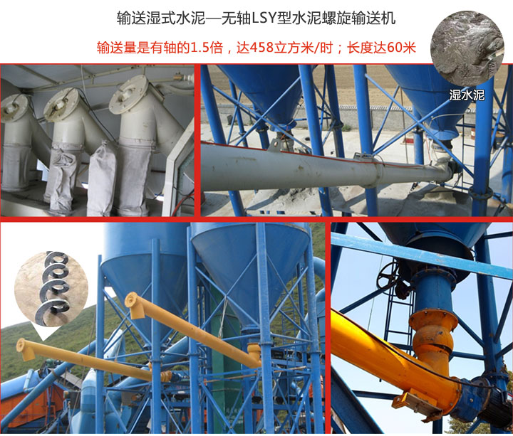 潮濕的水泥含水量偏大,且易粘黏,選擇無(wú)軸式水泥螺旋輸送機(jī),采用無(wú)螺旋軸,只含螺旋葉片的設(shè)計(jì)理念,可避免輸送中物料堵塞,卡料等現(xiàn)像;而且無(wú)軸設(shè)計(jì)其輸送量是有軸的1.5倍,高達(dá)458立方米/時(shí);長(zhǎng)度達(dá)60米,可多級(jí)串聯(lián),遠(yuǎn)距離輸送物料。