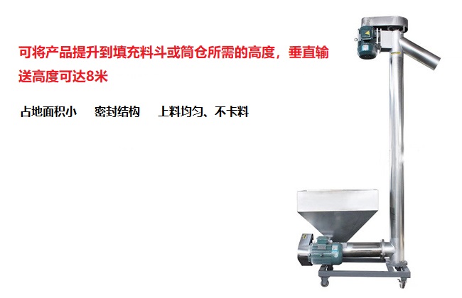 物料隨螺旋高速旋轉(zhuǎn),被輸送的物料從水平部分的進(jìn)料口加入,通過旋轉(zhuǎn)的水平進(jìn)料螺桿送入輸送機(jī)和垂直部分,然后將物料向上推至出料口出料口由垂直螺桿,物料隨螺桿高速旋轉(zhuǎn),被輸送的物料從水平部分的進(jìn)料口加入,通過旋轉(zhuǎn)的水平進(jìn)料螺桿進(jìn)入輸送機(jī),然后用垂直螺旋將物料推到出料口排出。