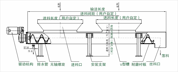 以上是對(duì)水平螺旋輸送機(jī)結(jié)構(gòu)及工作原理的介紹,水平螺旋輸送機(jī)有:200、250、300、400、500、600等型號(hào),用于粉狀/顆粒狀/小塊狀物料的小型、短距離輸送,可根據(jù)要求選擇單點(diǎn)加料、單點(diǎn)卸料、多點(diǎn)加料、多點(diǎn)卸料。