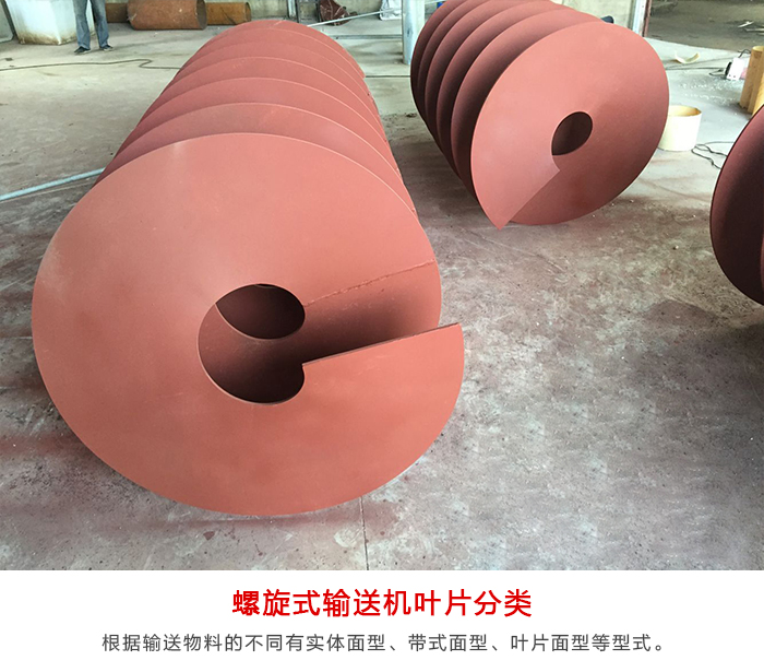 螺旋式輸送機(jī)旋轉(zhuǎn)軸上焊的螺旋葉片,葉片的面型根據(jù)輸送物料的不同有實(shí)體面型、帶式面型、葉片面型等型式。