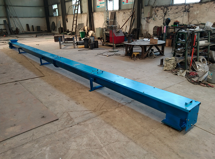 水平管式螺旋給料機適合多點裝料與卸料,輸送過程中可同時完成混合、攪拌或冷卻功能。對超載敏感,易堵塞;對物料有破碎損耗,適用于水平或微傾斜(20º以下)連續(xù)均勻輸送松散物料,工作環(huán)境溫度為-20—+40℃,輸送物料溫度為-20—+80℃。其轉(zhuǎn)速相對于垂直輸送機要低,主要用于水平或小傾角輸送物料,輸送距離一般不大于70米。