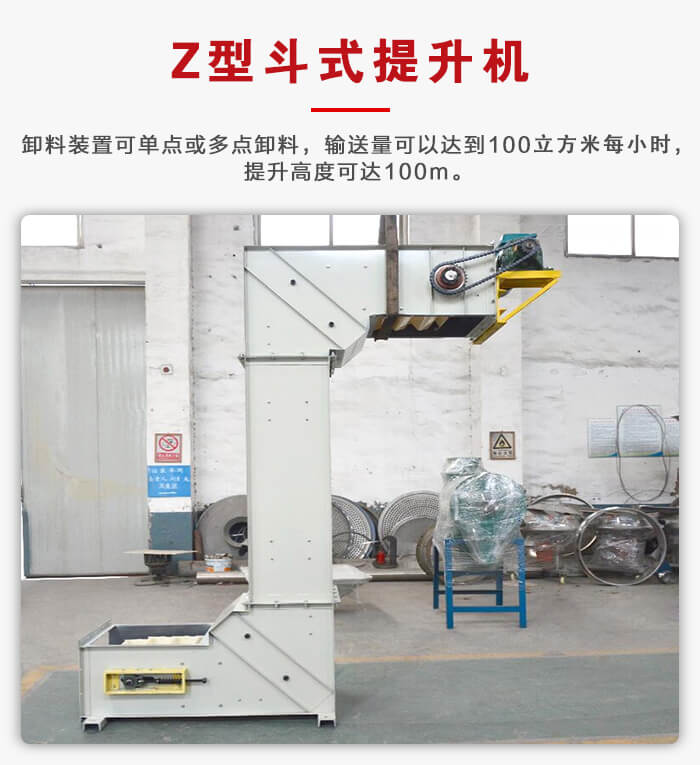 z型斗式提升機(jī)外形類(lèi)似于“z”型,也叫做轉(zhuǎn)斗式提升機(jī),可以單點(diǎn)或多點(diǎn)加料,通過(guò)卸料裝置完成單點(diǎn)或多點(diǎn)卸料,輸送量可以達(dá)到100㎡/h,提升高度可達(dá)100m。