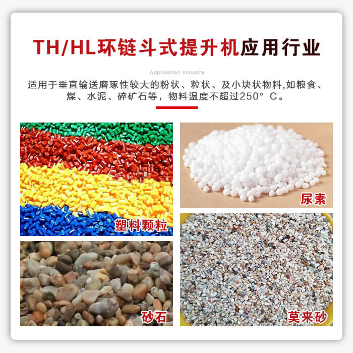 應(yīng)用行業(yè):適用于垂直輸送磨琢性較大的粉狀、粒狀、及小塊狀物料,如糧食、煤、水泥、碎礦石等,物料溫度不超過(guò)250°C。