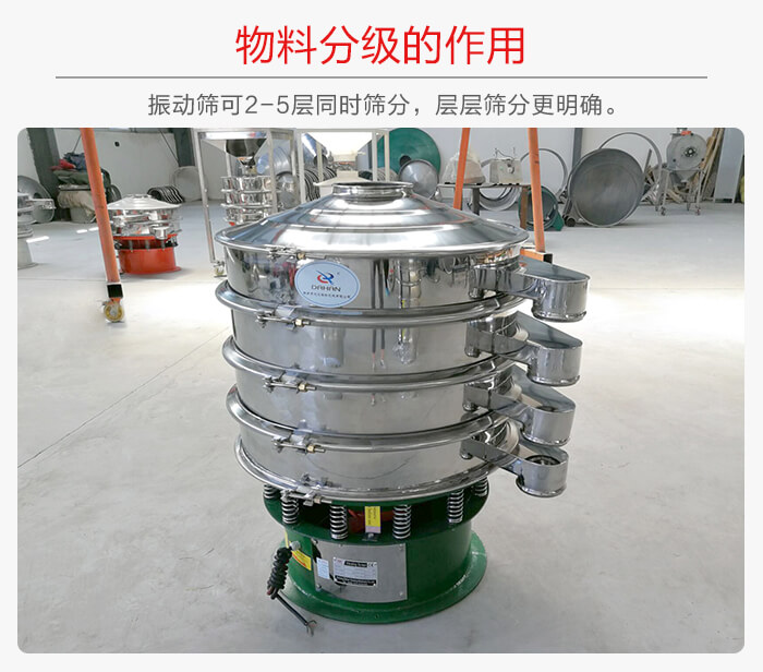 有些生產(chǎn)線中物料的粒徑并不是都是一樣的,粒徑是有很大不同的,利用振動篩設(shè)備可以將物料進(jìn)行分級,按照粒徑大小分別篩分到不同的下一階段生產(chǎn)線中去,最高可以分6級,以實(shí)現(xiàn)更加精細(xì)化的生產(chǎn)活動。
