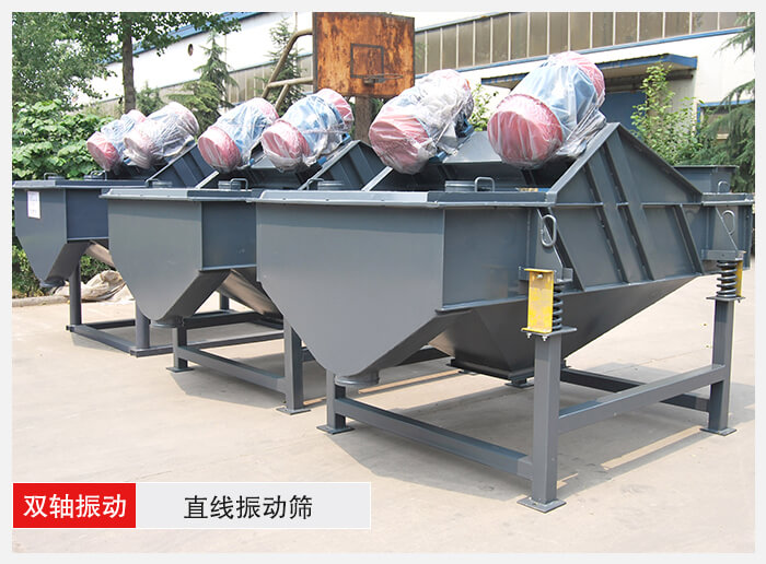 雙軸振動篩是利用同步異向回轉(zhuǎn)的雙不平衡重激振,篩面水平或緩傾斜,篩箱的運(yùn)動軌跡為直線。